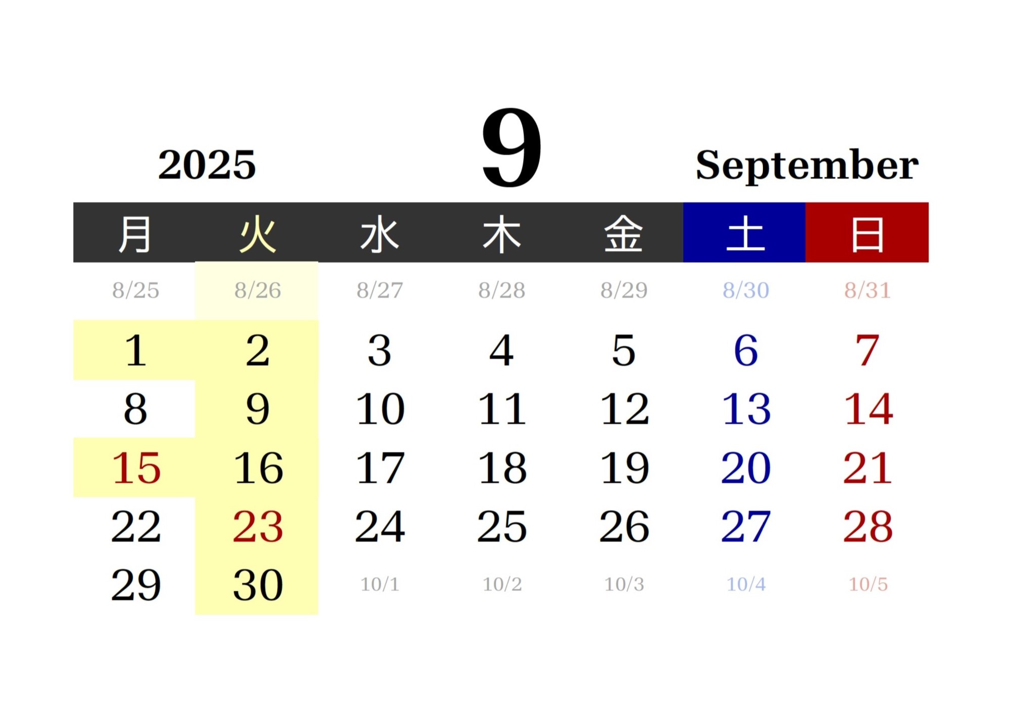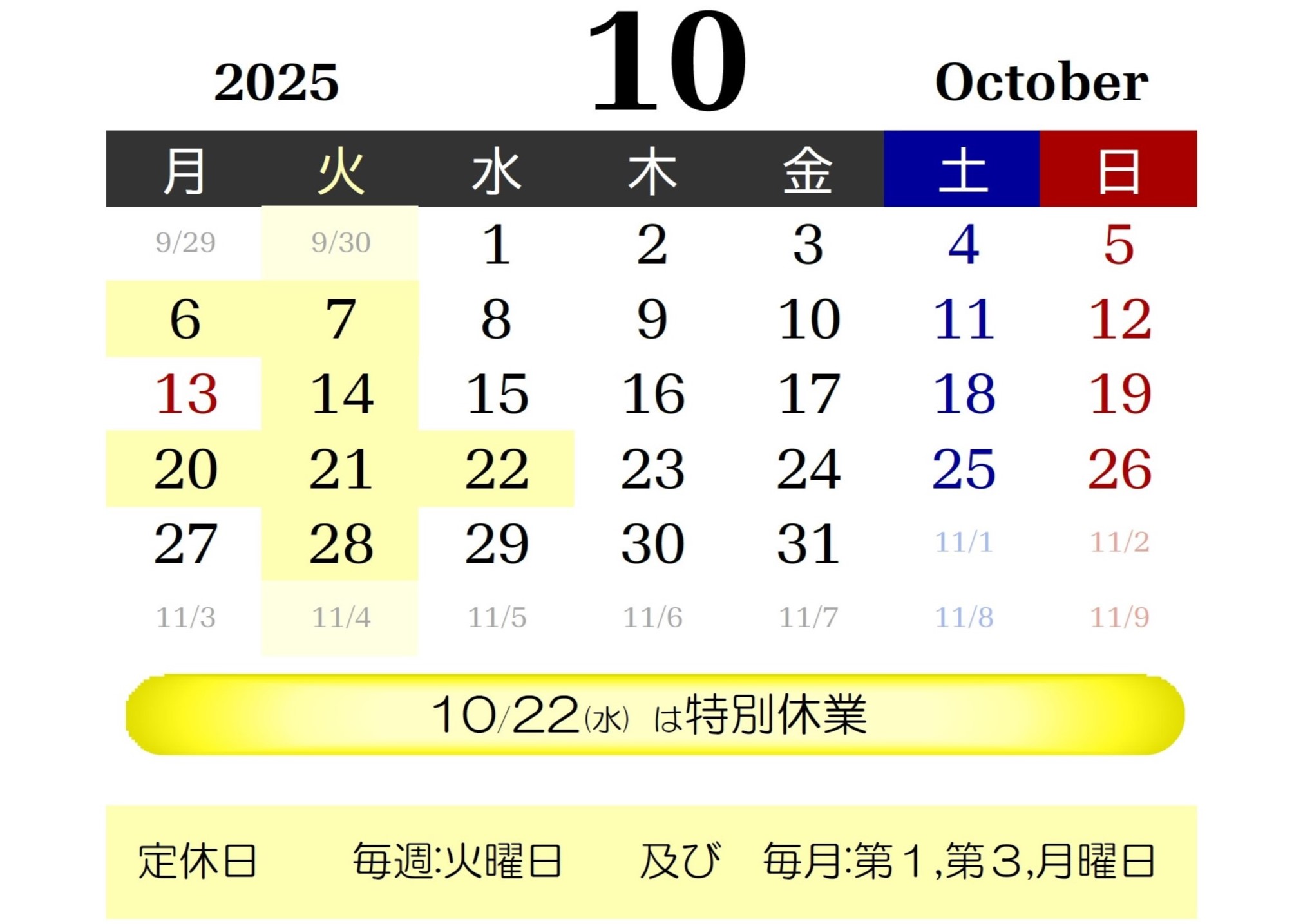 ●毎週:火曜日●毎月:第1,第3月曜日